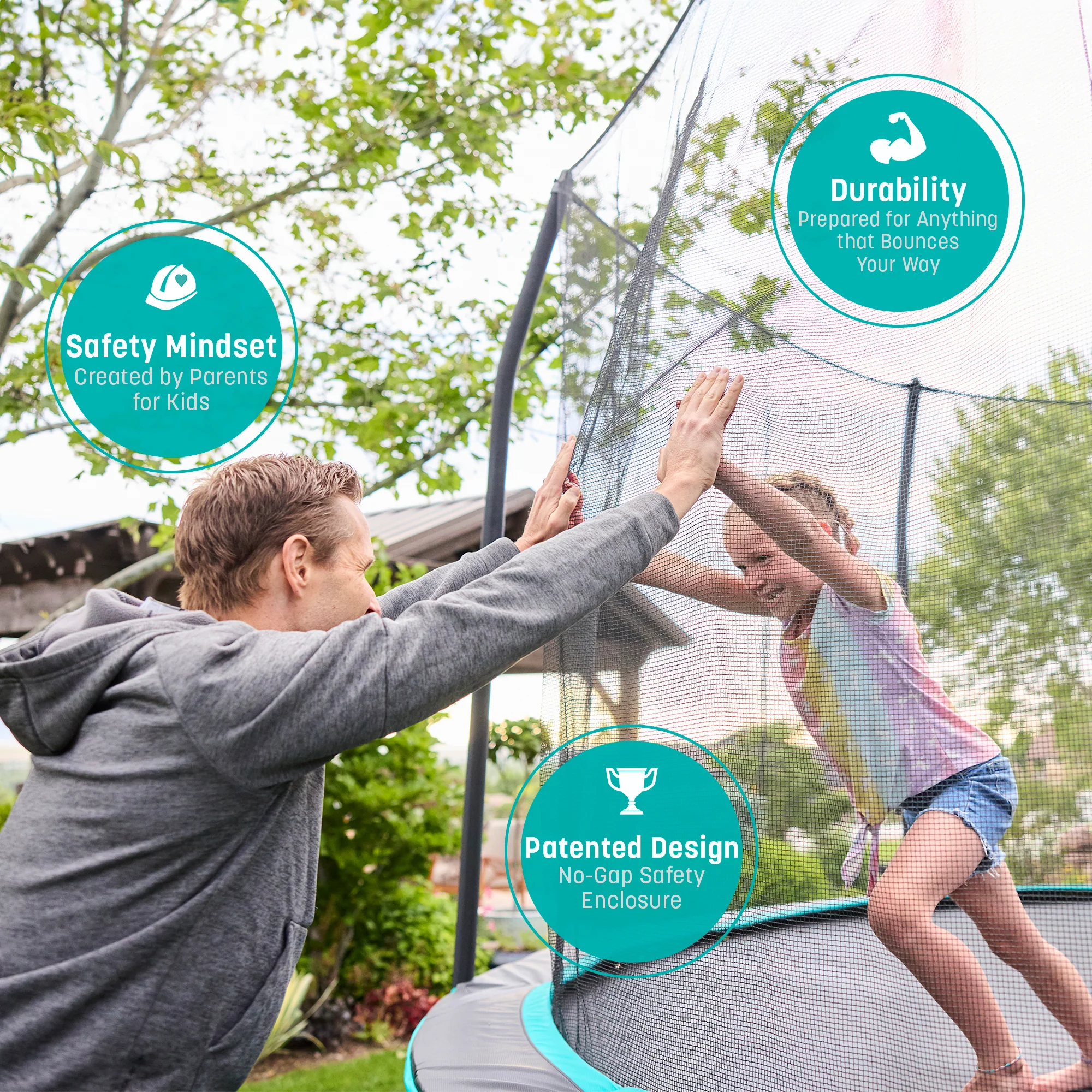 PATENTED NO-GAP DESIGN: The no-gap enclosure eliminates pinch points, offering a safer, worry-free jumping experience for your family.