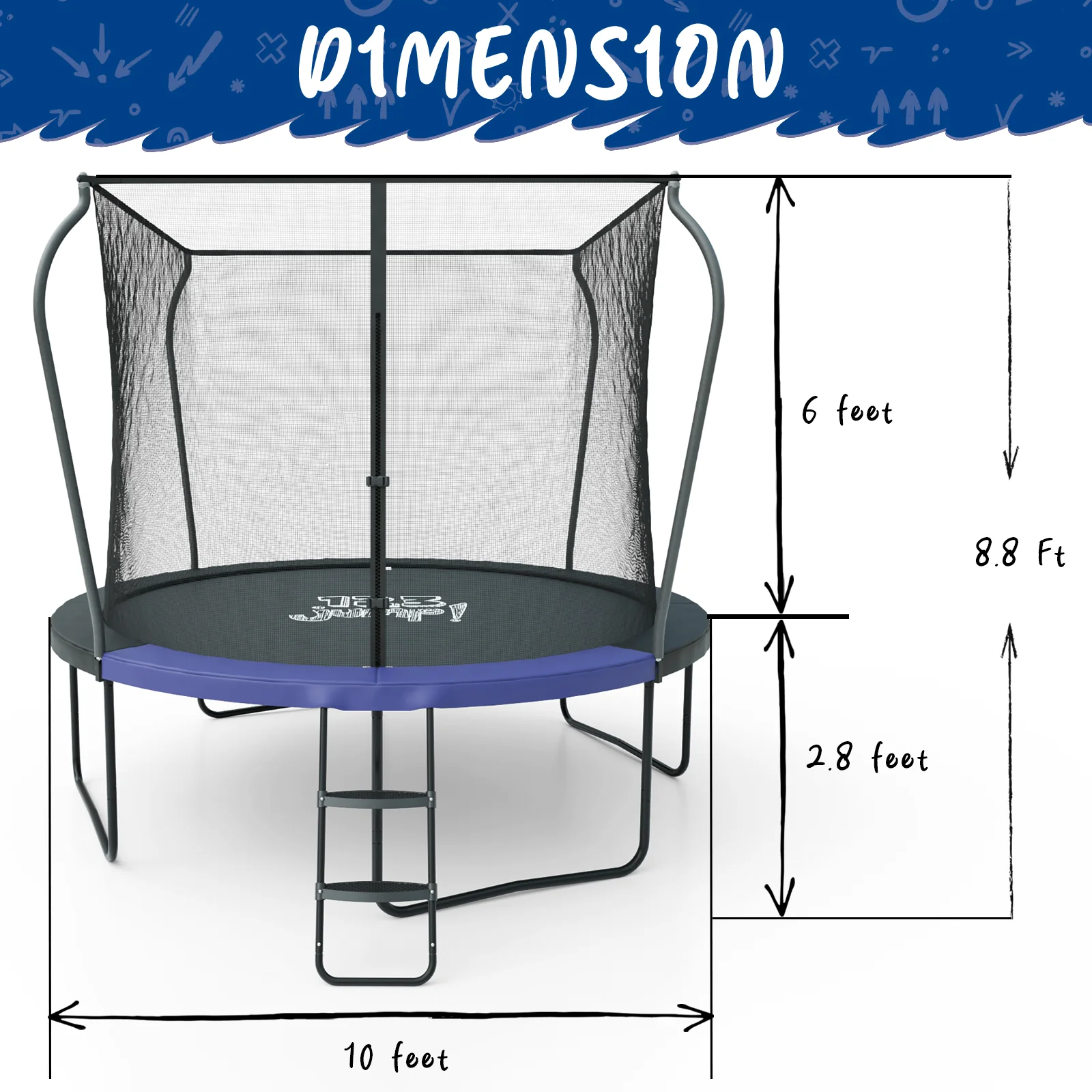 With a 123 Jump Kids Trampoline, your kids will spend more time playing outside than ever before! Because of our trampoline’s no-gap enclosure design and strong galvanized steel frame, you can take a deep breath and relax knowing your kids will stay safe while jumping. With a sleek black design, this outdoor trampoline not only performs well but looks good too! A step ladder is included for convenience, so kids can easily get on and off the trampoline independently. With your new 123 Jump Kids Trampoline, the backyard will become your kids’ favorite place to spend their time.